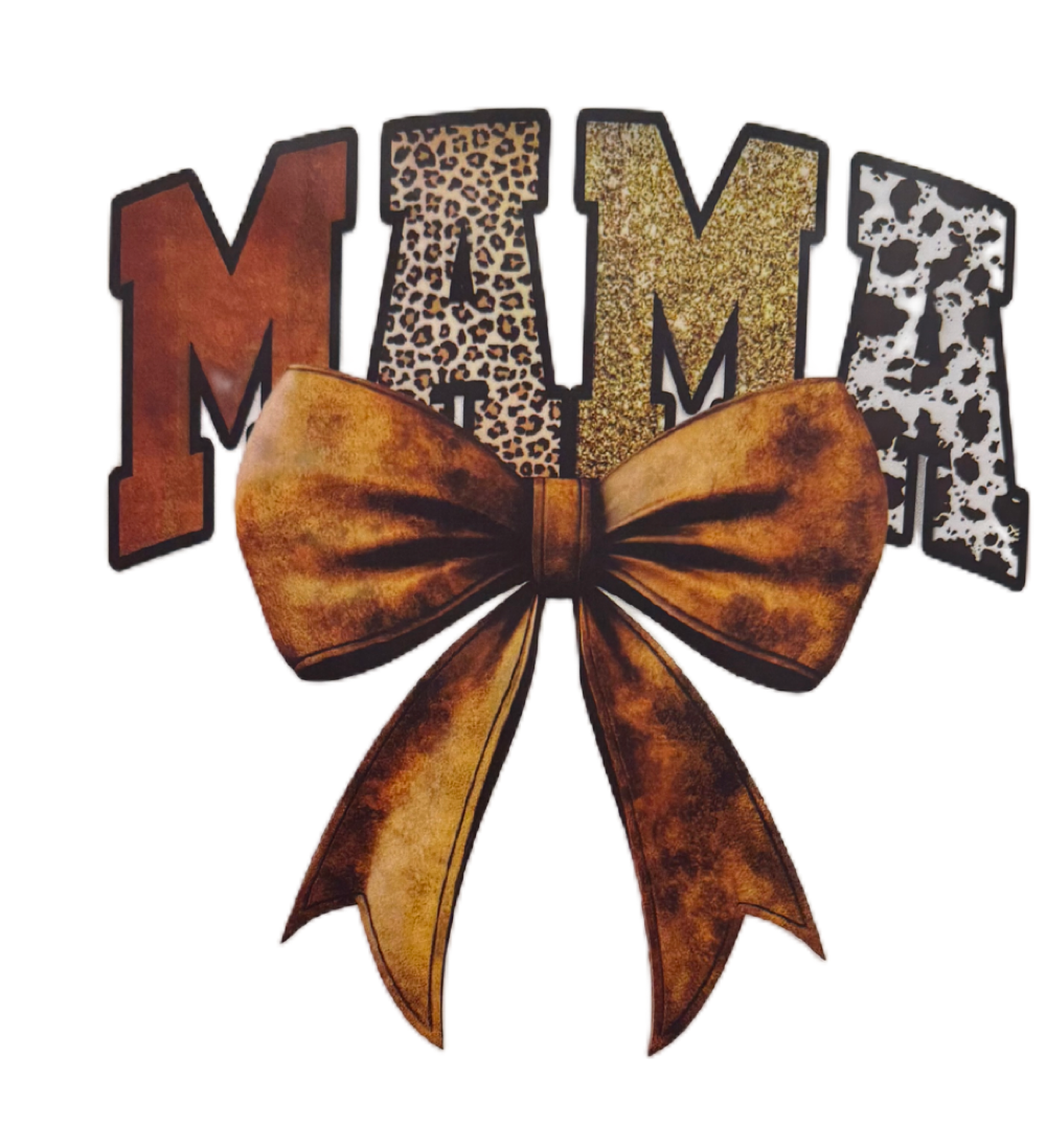 Mama Bow Brown Gold Glitter Look Cheetah Cow Print DTF Heat Transfer