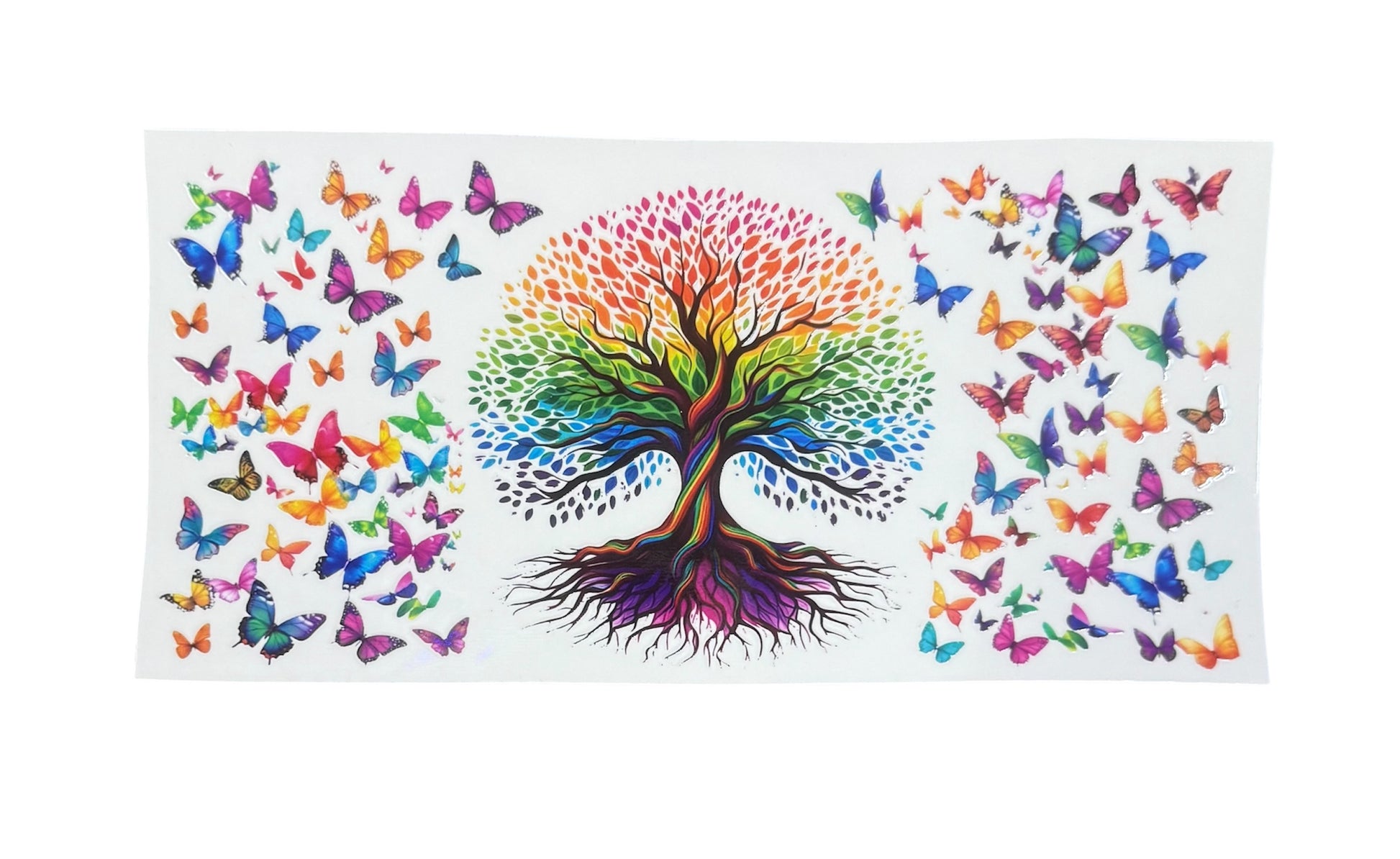 Colorful Rainbow Tree & Butterflies UV Cup Transfer