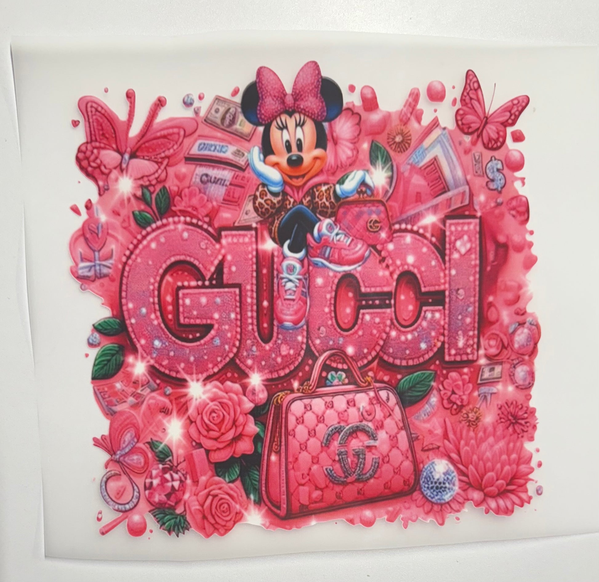 Pink Gucci Minnie Mouse Purse and Roses DTF Heat Transfer