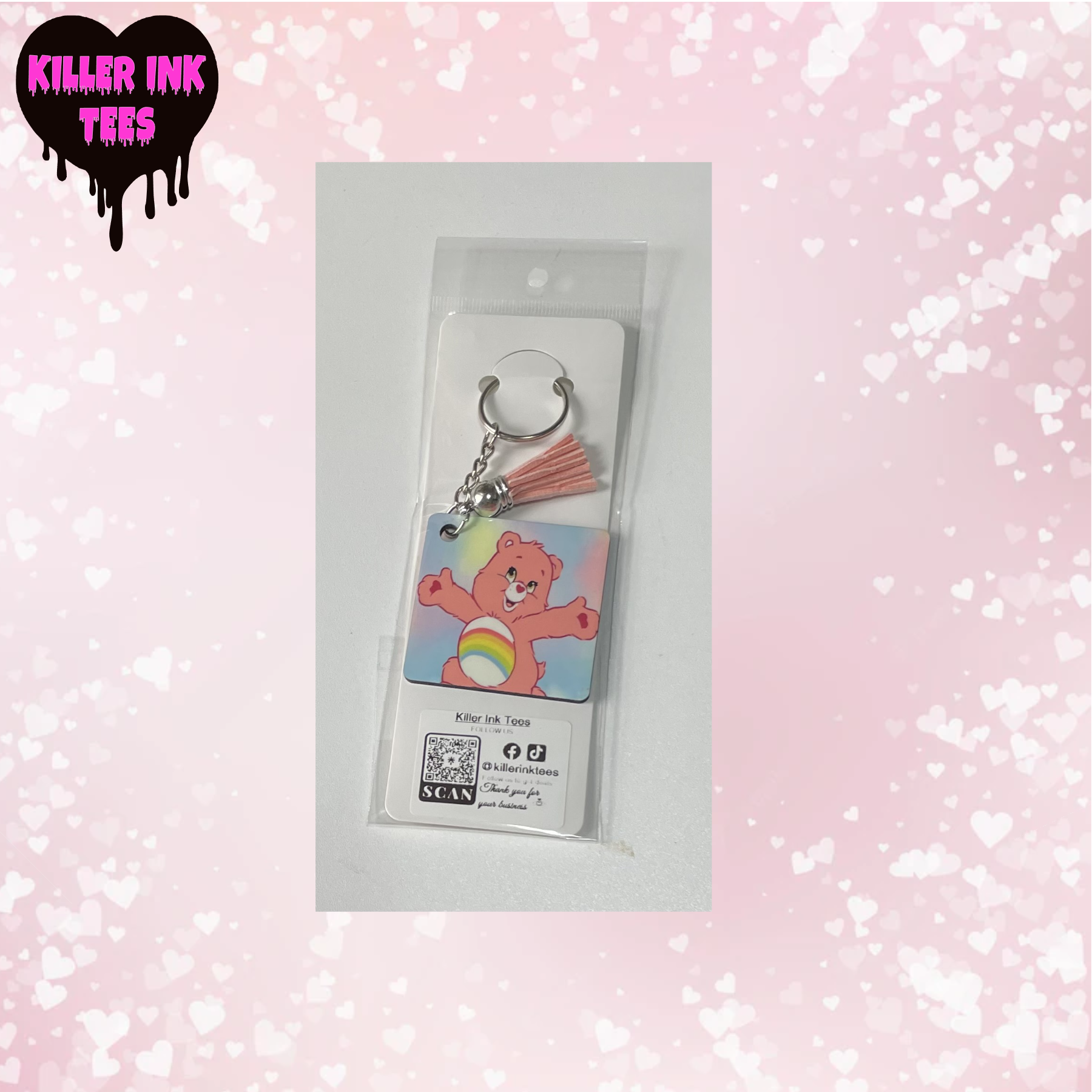 Pink Bear Keychain Double Sided