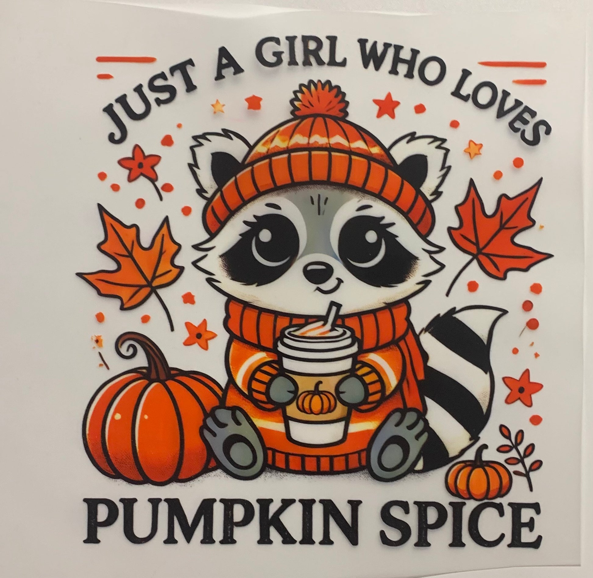 Raccoon pumpkin spice DTF Heat Transfer