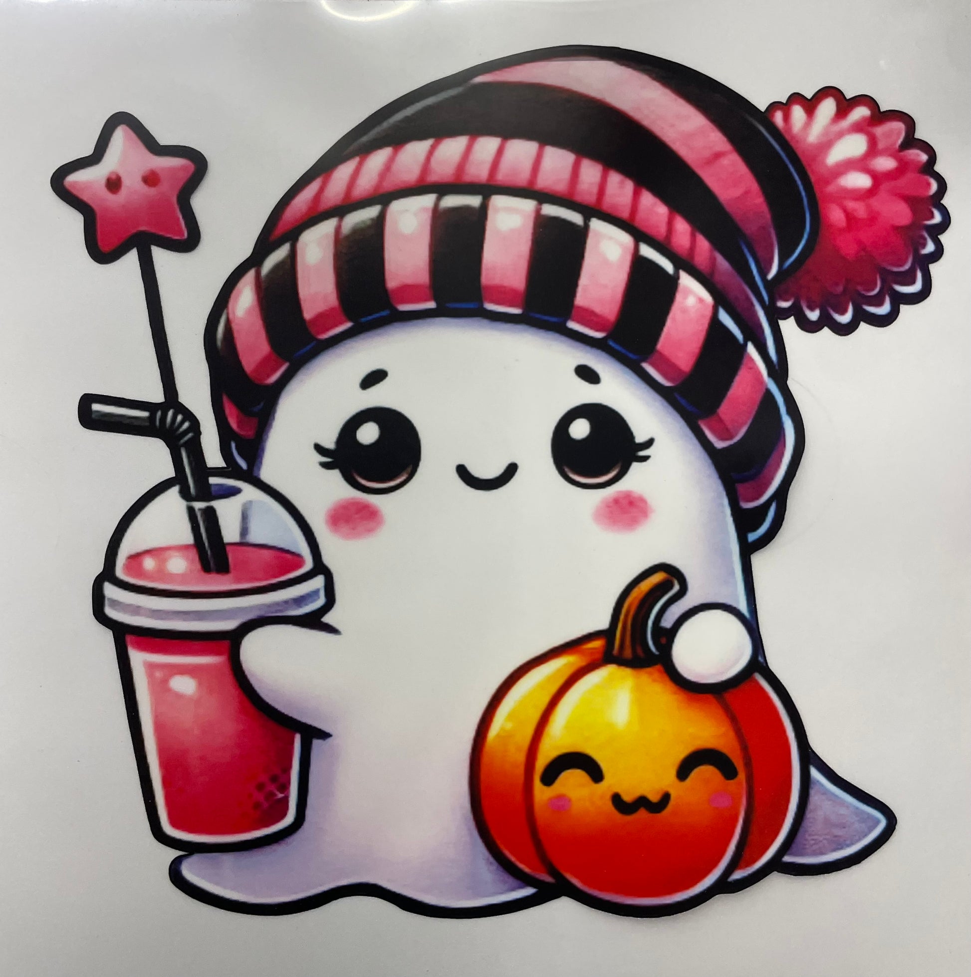 Pink ghost drink star DTF Heat Transfer