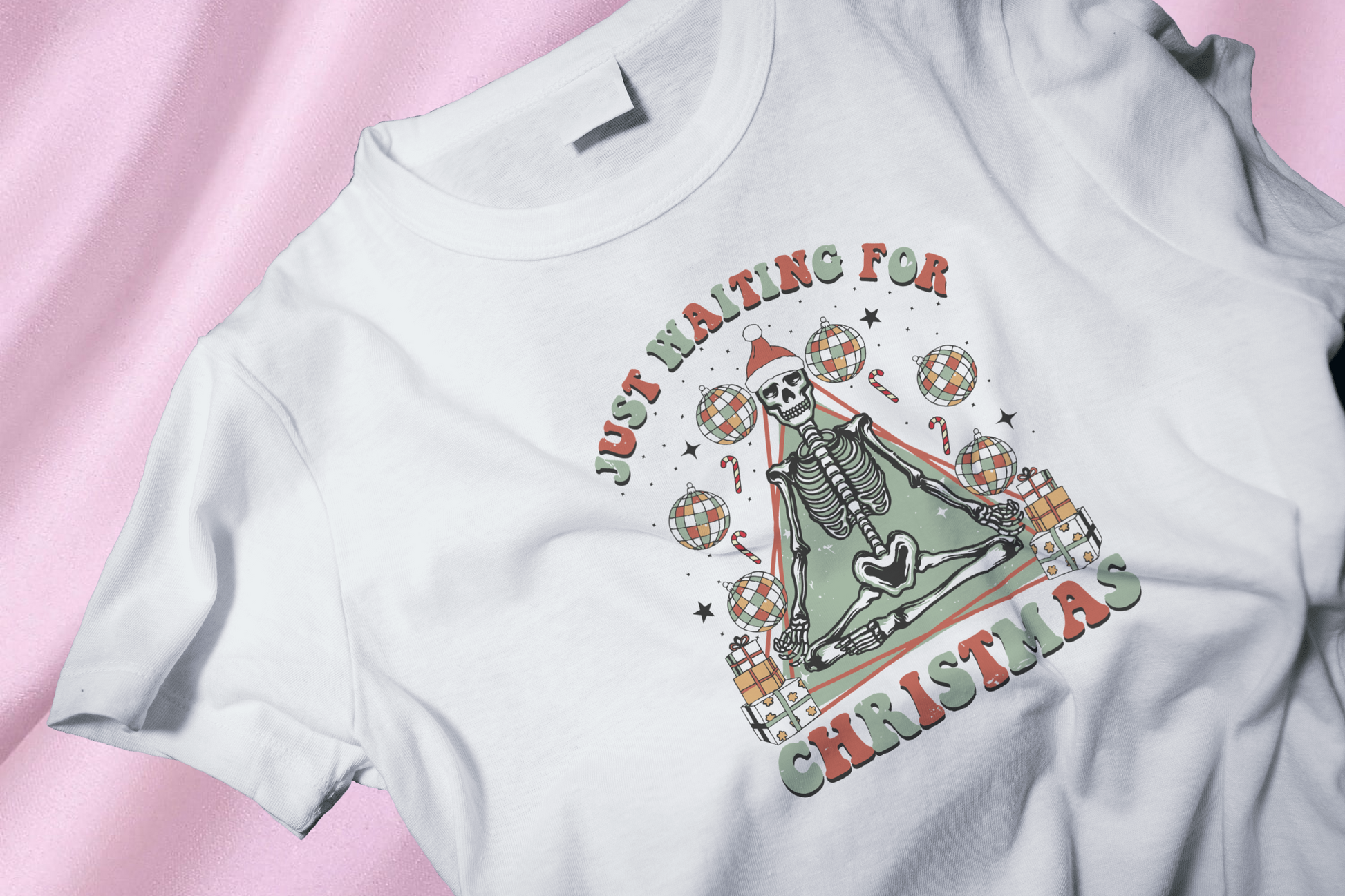 Waiting for Christmas green Skelton DTF Heat Transfer