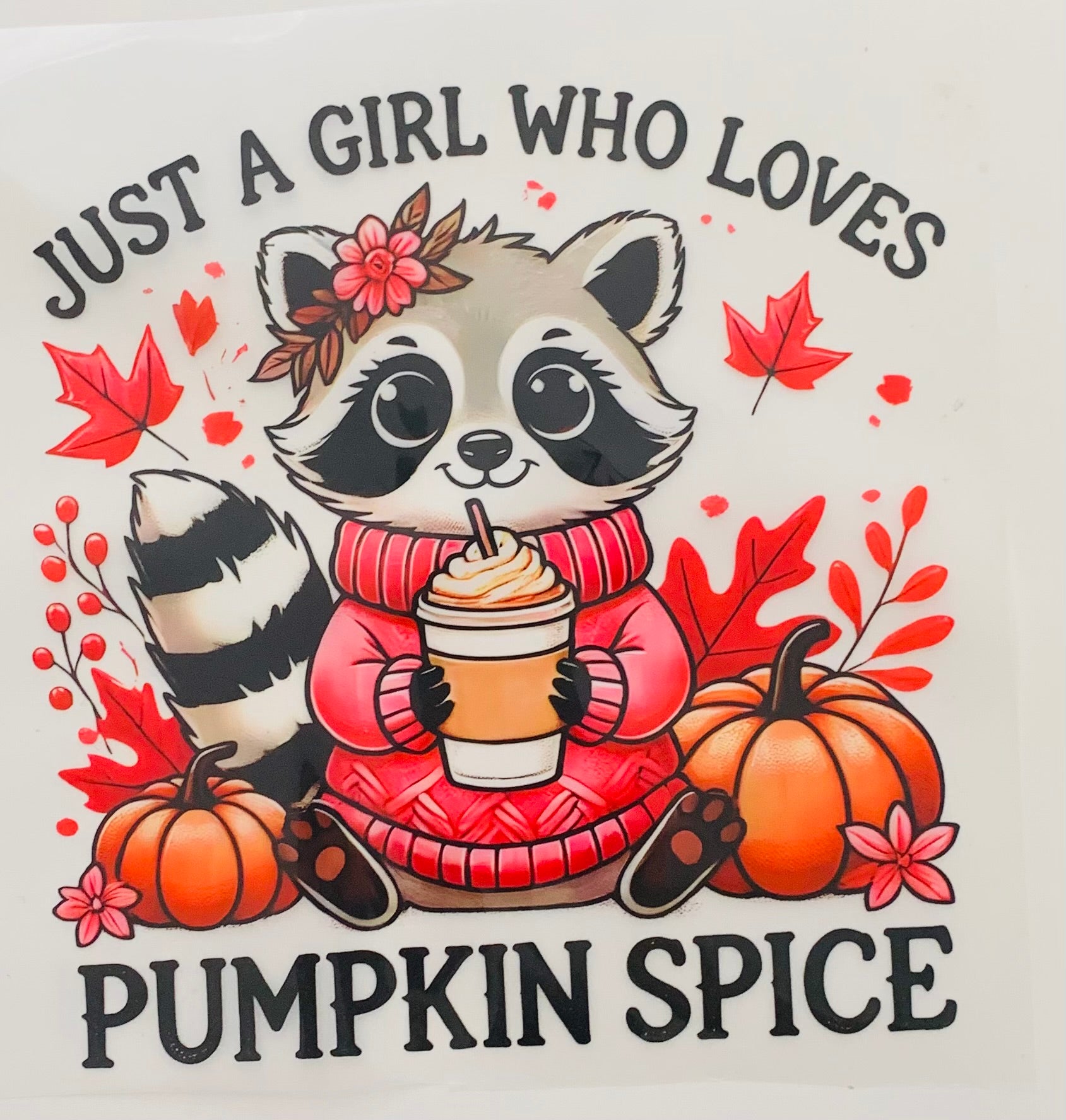 Raccoon pumpkin spice DTF Heat Transfer