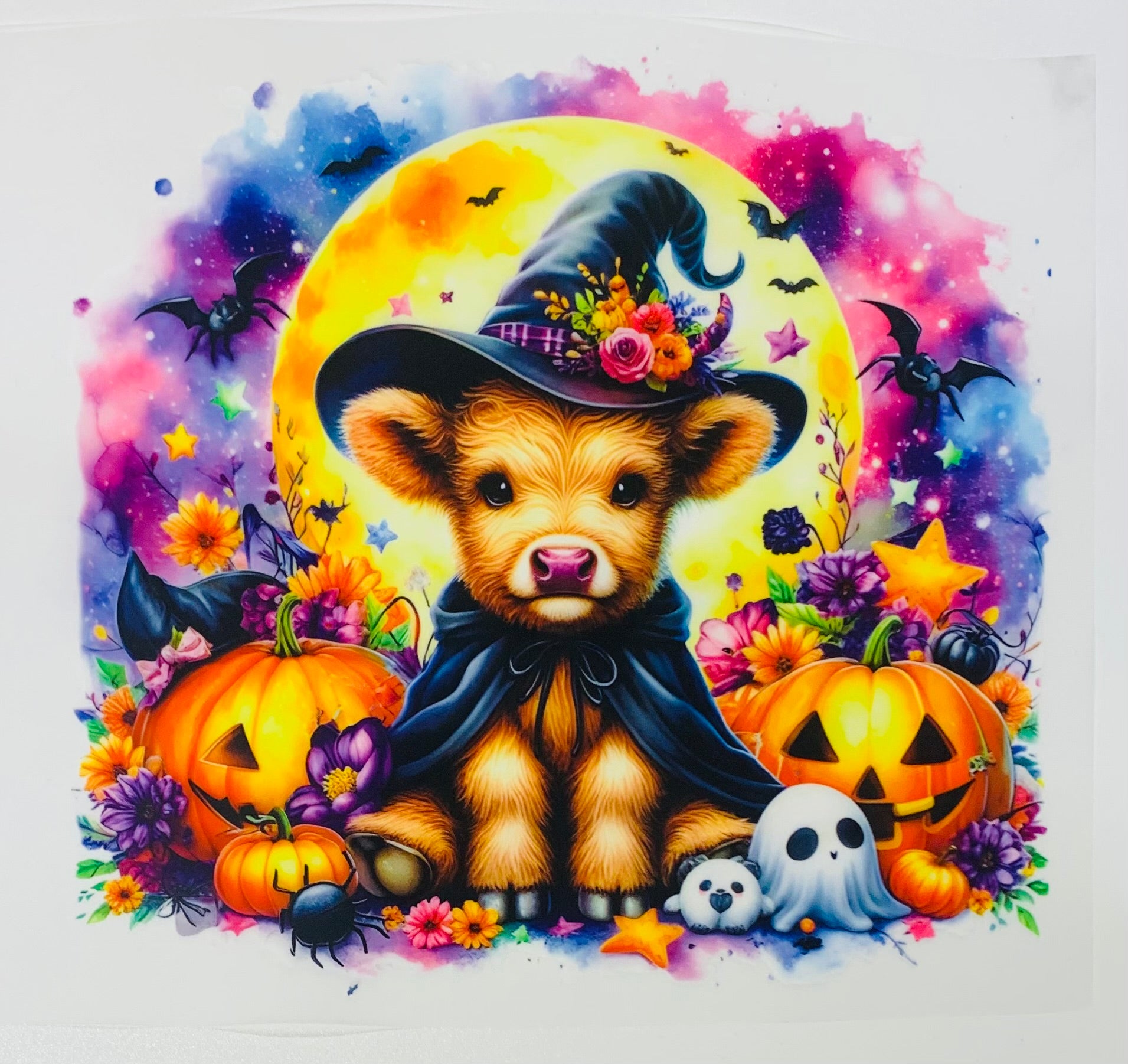 Colorful cow witch hat DTF Heat Transfer