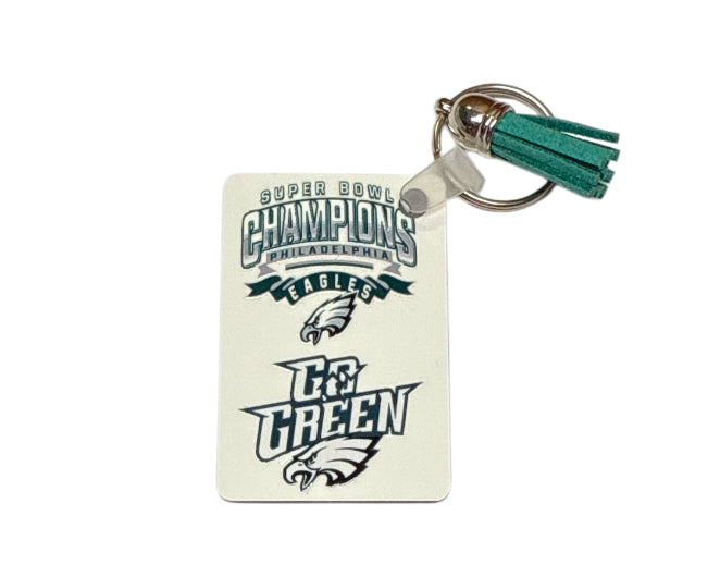This is a customized keychain. The keychain is made of mdf material with a glossy seal Very durable and great gift .What you see is what you get. Thanks for shopping.tassels are random colors