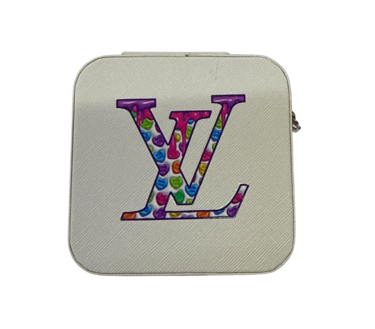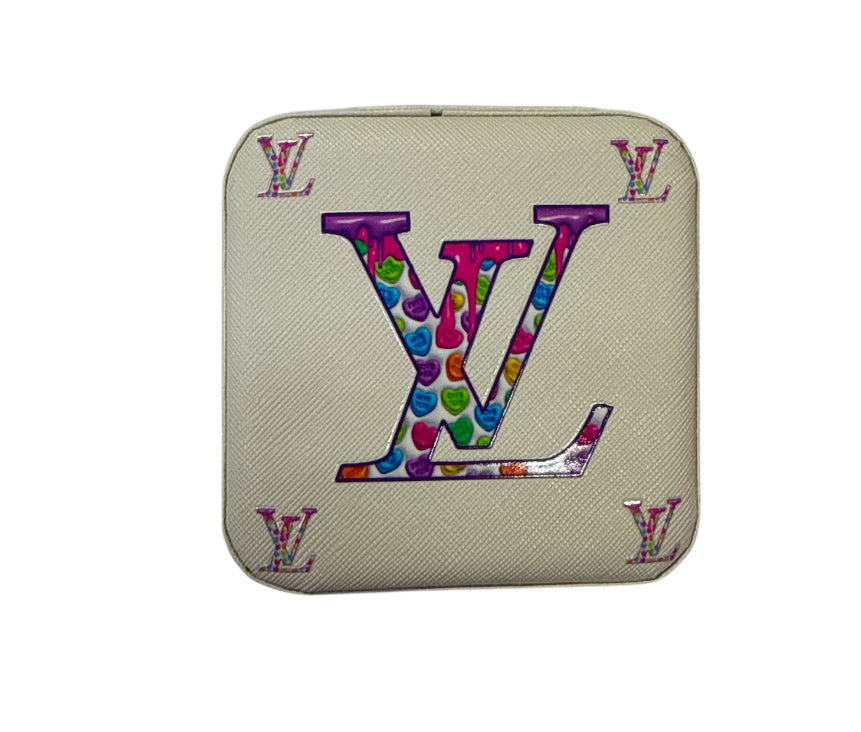 Lv colorful Small white travel jewelry box with zipper