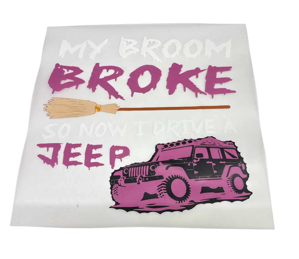 My broom is broke so now I drive Jeep pink DTF Heat Transfer
